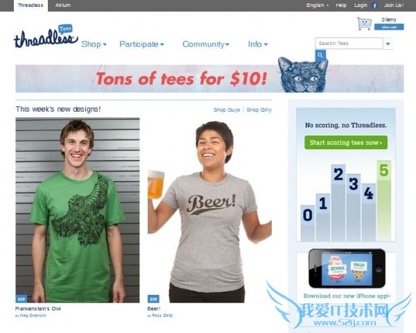 接下来他和Jacob采用了自动评分系统,给T恤的设计打分,从1到5。大家踊跃参加一个又一个新的比赛,因为对于平民设计师来说,T恤就是一个展示作品的出口。赢家之一Glenn Jones说,这和钱没关系,整件事情酷就酷在你的作品被印在T恤上,穿在别人身上。