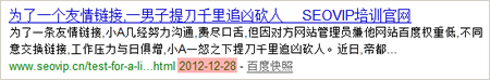 2013.1.7,一篇名为“为了一个友情链接,一男子提刀千里追凶砍人”的文章在微博上传得火热,引起了广大seo关注和讨论,随后该文章被各大知名站长论坛转载。