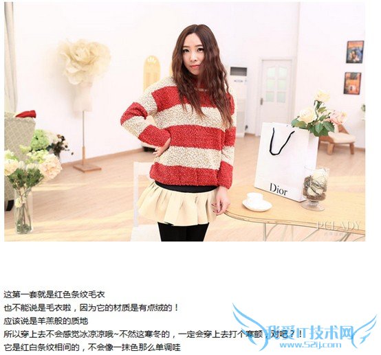 接下来就开始介绍他所要推荐的女装了,配上了好几张各个角度的图片,然后对毛衣的材质样式等做了简单的介绍。文字很少,但很有概括性。下面就介绍了另外一件。