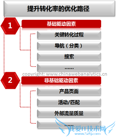 提升基础驱动因素,看似抽象,例如我们上回中的例子——“转化率的基础驱动”——多少听起来有些拗口,但操作却是实在的,具体的。在上回中,我们把影响转化率的基础驱动归结为如下项目,这些项目(item)即是我们需要动手逐个优化的。而这些项目优化的结果好坏,当然对转化率的好坏起到至关重要的作用。