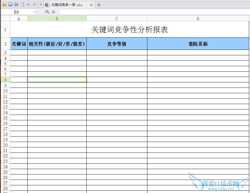 这个报表主要是记录网站关键词排名页面的竞争对手情况,表格分为四栏:关键词、相关性(填写极好/好/差/很差)、竞争等级、着陆页面。相信大家也看的懂这个表格内容,笔者就不一一详细说明了,简单的说一下关于第三栏的竞争等级,竞争等级怎么判断呢?其实大家可以粗略的记一下: