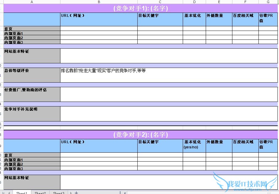 这个报表主要是记录我们网站同行竞争对手情况,如下图: