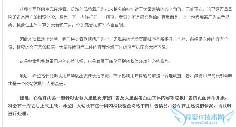 或许百度其实很早就发现了这块广告网页的弹出对浏览者带来的极大负面效果,只是还没有着手解决这一块,现在出台这个石榴算法,也是合情合理的存在。这次出台的石榴算法其实也只是实验,毕竟广告还是要存在,各大站长要靠这个生存在互联网时代,但是说实话,真正的低质量恶劣的广告弹出窗口确实让人很烦。