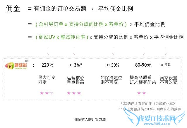 上面看懂没?当我们把佣金收入的公式拆分到“到站UV、整站转化率、支持分成的比例、客单价、平均佣金比例”这5个数字时,我们发现,每个数字都可以计算,并且有据可查。换句话说,我们可以计算了。这比很多行业要实际得多。