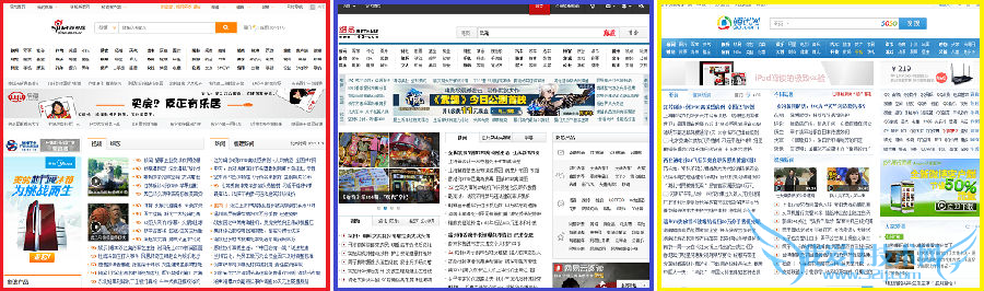 下图分别是当前新浪、网易和腾讯的首页。它们表现出极大的相似性:1)对于搜索的重视;2)对于视觉体验的改善(行间距加大了、广告减少);3)对于打通自家产品(尤其是微博)的重视。