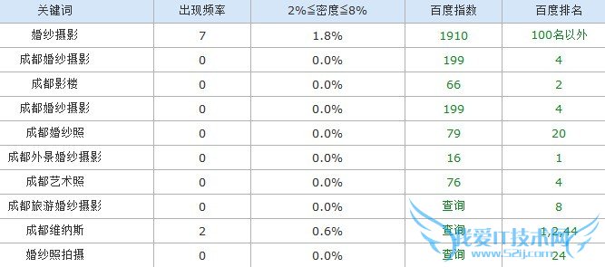 一来就优化“成都婚纱摄影”这个词显然是不现实的,关键词的布局有难易之分。我们遵循的主要原则就是从易到难,从长尾入手,当有足够多的长尾关键词有了排名以后,自然会带动整站权重的提升,从而优化主关键词。不然,在短期很难见到效果,让客户跟网络公司都失去信心。