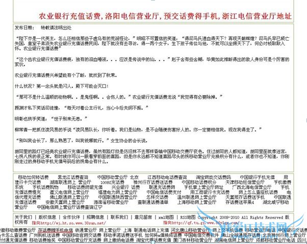 页面最下方很多指向外站的链接,比如“存话费赠手机电信”指向http://wj.ht.so.www.30san.net/ ,“河北唐山移动营业厅”指向 http://qf.tu.gz.www.86ylqx.com/,这些都属于黑站加链接。