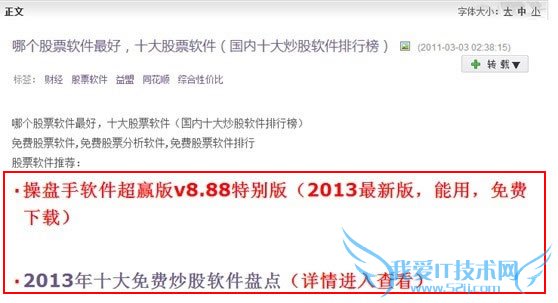 根据博友@37网站诊断分析在卢松松博客上的评论看:从1,2,3,5的推广性软文来看,内容上的确过分推广、不相干、质量度不高。但我不太明白的是第4 个,当然知道它发错了地方,财经频道发了培训学校的软文,但除了这个外,文章本身我并没觉得不过分吧,首段引入时候和尾段简介加入了文本链接,无非就是加 外链突出宣传罢了,其他段落文字不是垃圾,这也是重点打击的对象吗?有的自然发的新闻和资讯类文章也会存在这种加链接宣传的现象,难道百度不分青红皂白一 概抹杀?