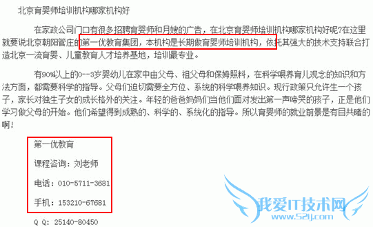我来也分析下第四个案例,除了财经频道发培训学校的软文外,另一方面这是一篇刻意叠加「名称」的文章。通读文章,作者刻意植入大量学校全称和网址,导致文章读起来很绕口,如果你通读全文的话,会发现本文没有任何价值,完全是为了推广而写的。