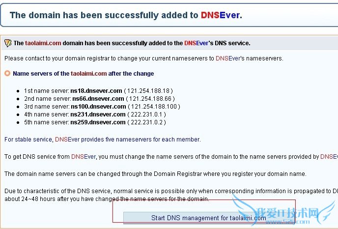 3:域名添加好了,如图点击Start DNS managemene for xxx.com。