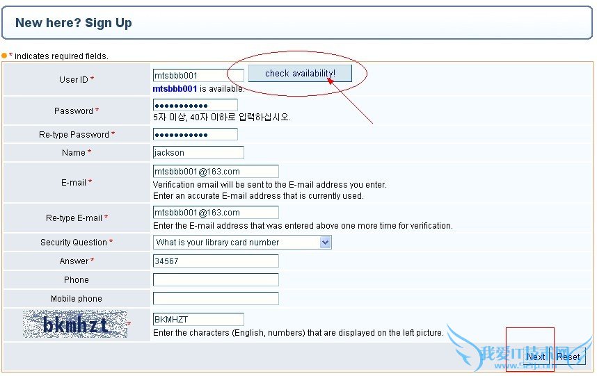 2:填好个人信息,先点击一下check availability检查用户名,才可以点击next下一步,Security Question:what is your xxx?是密保问题,随便填。