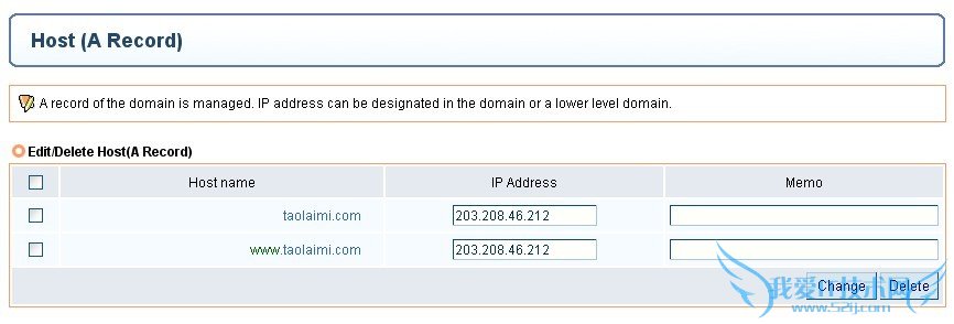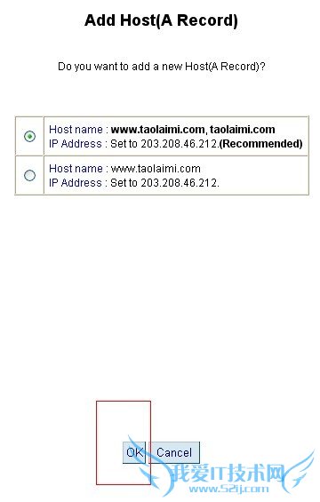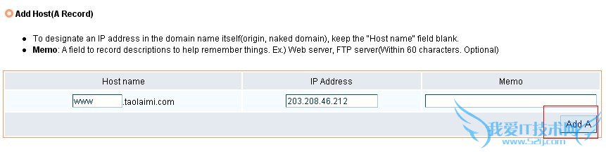 5:示例一下解析A记录,前面填www或者二级域名,中间填IP地址,后面Memo不用管,点击Add A。再出来下一个页面点击OK即可。