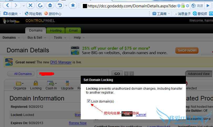 好了,到了这一步,域名转移也可以说是已经完成了,只要等5天,域名就会自动从GODADDY转入易名啦。