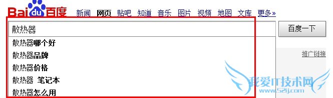 2、百度下拉框:笔者在百度上搜索某个关键词会出现下拉框,下拉框里出现很多文字,这些文字几乎都是长尾词,然后笔者可以搜集起来,如搜索散热器,下拉框会出现散热器品牌、散热器价格等长尾词。