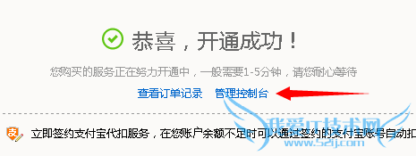 这里我们就已经开通完毕了,然后打开管理控制台,再点击进入管理面板。开通完毕后我们的手机会收到,由阿里云发的OCS的密码,这个密码要保管好,因为我们后面要用到。