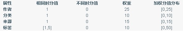 再结合作者、分类和来源,通过加权设定总体的相似度分值: