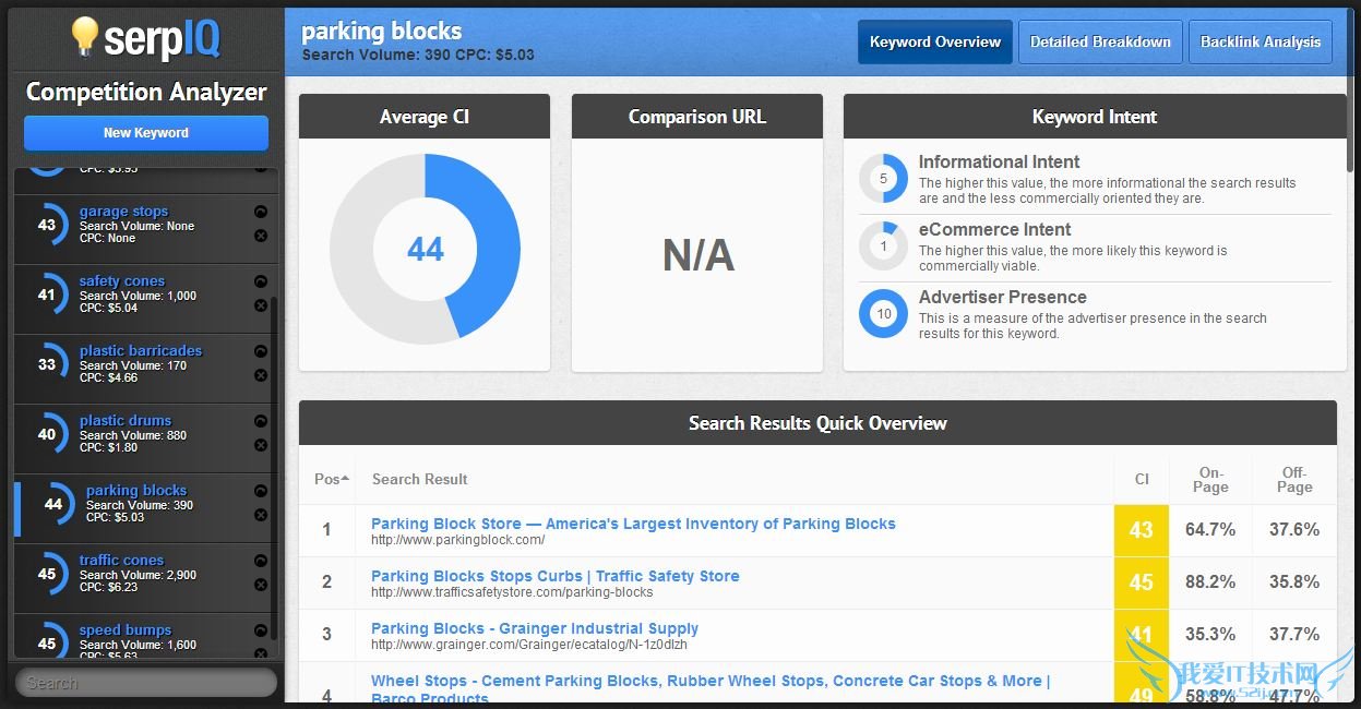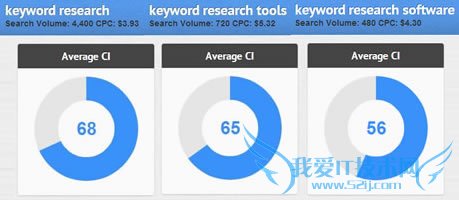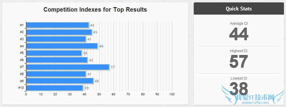 但他并没有提供更详细的信息, SerpIQ 这个工具则提供了平均的竞争指数