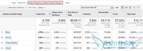 内容分组是一个非常强大的工具,可以让你看到网站的不同部分的真实表现。