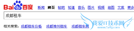 对于很多刚刚建站的朋友来说,选择适合自己网站的关键词是一个细心活,因为在此期间,很多人没有明确的目标,不知道如何设置关键词。那么,在百度里面打开网页,输入关键词研究竞争对手的方法是比较明智的。笔者搜索的是“成都租车”这个词,因为租车这个词地域性比较强,可以看到百度搜索第一位左侧和右侧各为8个竞价排名位,说明这个行业竞争程度也是比较大的,百度找到的相关搜索结果大概为829万个,看到这个数字,你会感觉有压力吗?继续翻到第二页,在搜索结果的顶部会出现百度推送的相关关键词,如图: