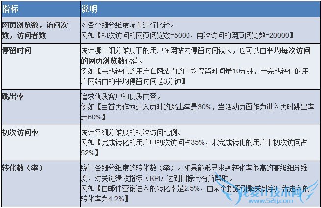 所谓的细分法是指将网站的访问者基于某些条件进行分类(细分),再分别进行分析的方法。网站分析数据细分时常用的分析指标如下: