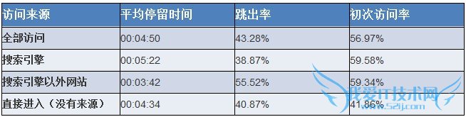 从上表中我们可以看出通过【搜索引擎】进入的访问者在网站内的停留时间最长,而且跳出率最低。相反通过【搜索引擎以外网站】进入的访问者在网站内的停留时间最短,跳出率最高。