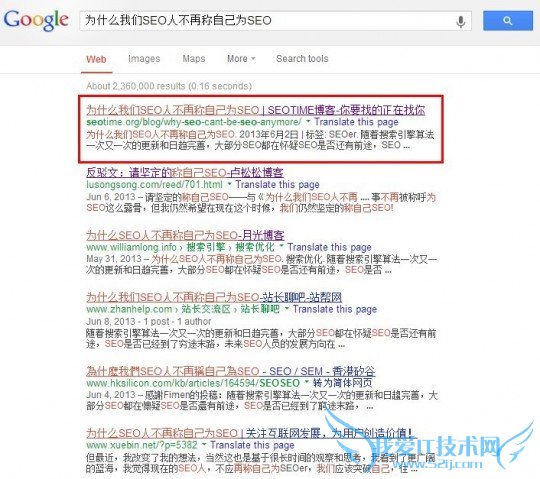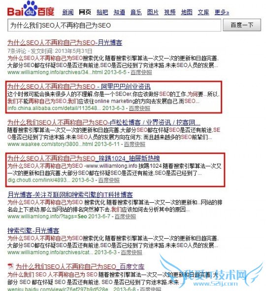 中国互联网转载和抄袭是司空见惯的事情,这个时候对搜索引擎来说,识别原创的能力就显得尤为重要,百度这方面做得非常不好。就拿本站为例,我定期会更新一些文章然后投稿到一些行业知名网站,但一旦文章被转载之后,自己文章的排名在百度就没了踪影,取而代之的是一些行业网站、甚至采集网站的内容都有可能排在我前面,如下图是我上次写的《为什么我们SEO人不再称自己为SEO》这篇文章,百度的搜索截图如下,