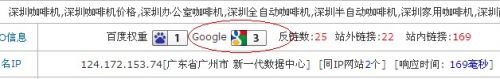 对于前段时间PR值的变化笔者真有不解,在前几个月中笔者通过A5站长网得知谷歌官方信息说PR值在今年是不会更新了,但是就在上周笔者使用站长工具查询时发现当前笔者所优化关于销售咖啡机的网站PR值发生了变化,在之前笔者所优化的咖啡机网站PR值为4,现在PR值却为3了,其他几个站点的 PR值之前为3而现在却降到0了。如下图当前的PR值。