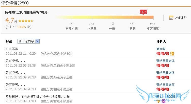 麦包包虽然在每项评论后,打出了星级,可是依然没有一个综合的评分。这样的形式,虽然突出了每条评论,但很难让用户在总体上感知到一个产品的优劣。