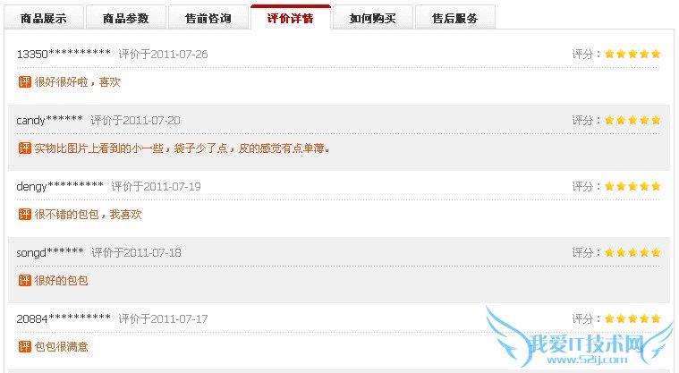 这是最简单的一种评论模块,拍拍和麦包包采取的就是这样模式。