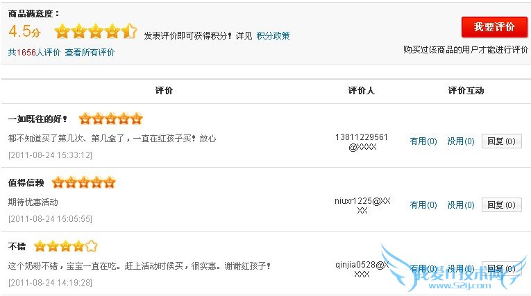 这种评论模块,给出了每种商品的综合评分,可以在整体感知到商品的优劣。如淘宝、当当、红孩子、麦考林,都采取了这种形式。不过每个网站也都有些自己的特点。