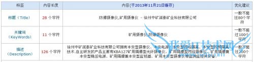 从上图可以看出,网站是做两个关键词即:矿用摄像仪和防爆摄像仪。在网站优化初期,我们将网站的标题定义为“矿用摄像仪,防爆摄像仪 - 徐州中矿润泰矿业科技有限公司“,网站于9月22日开始做seo优化,大概半个月左右的时间,"矿用摄像仪"排在首页,"防爆摄像仪"排在第八页,在未来 的两周,我们依然有频率的增加网站文章以及站外推广,排名变化很小,一直维持在第七第八页。