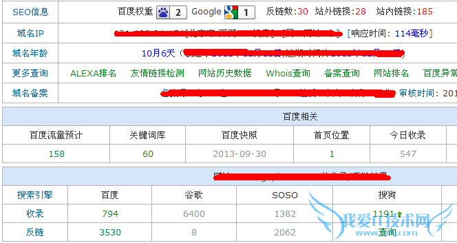 那么我们再看一个例子,这是一个运营了10个月的新站,百度流量预计已经有158,关键词库比较多有60个关键词有排名,但收录数量只有794个页面,站长工具显示的百度权重2。