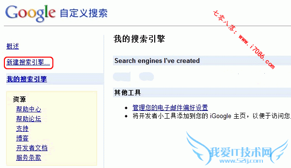 1、登陆Google自定义搜索,选择新建搜索引擎。