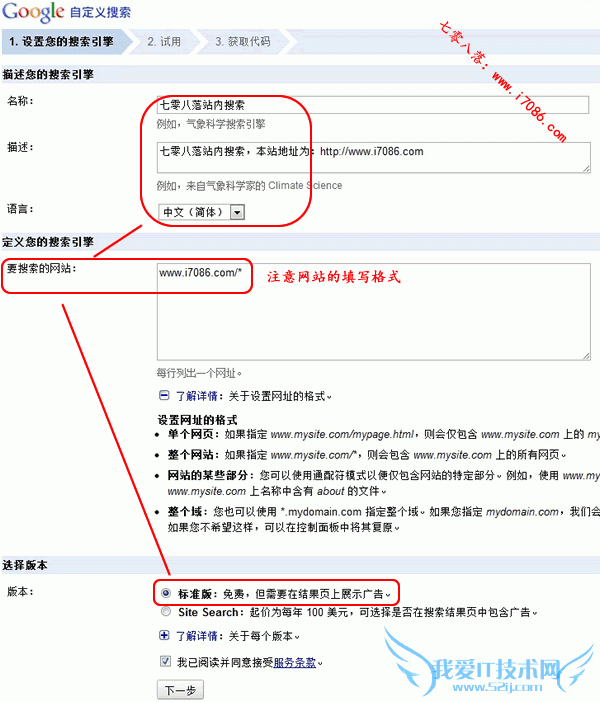 ③选择版本:当然选择“标准版:免费,但需要在结果页上展示广告。”