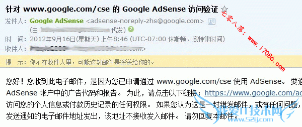 提交后您将收到一封确认邮件,请点击邮件中的链接,授权Google自定义搜索关联AdSense 帐户。