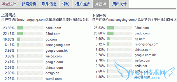 牟长青的博客也有30%的流量来自于百度和Google,不过还是百度的最多,其次为28tui、QQ、卢松松博客、站长之家、go9go、无觅。