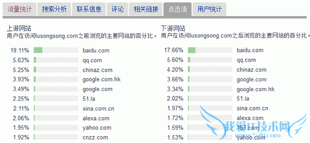 而 我的博客只有30%左右的流量来自于搜索引擎,百度占了近20%,Google只有不到8%。说明我博客的SEO优化还需要加强,奇怪的是有三个统计网站 的流量来源也进入了前10名,它们是51la、alexa和cnzz,我在想这些来自于流量统计网站的流量来源,更多的是站长在看流量来源的时候有我的网 址,点入了我的博客。