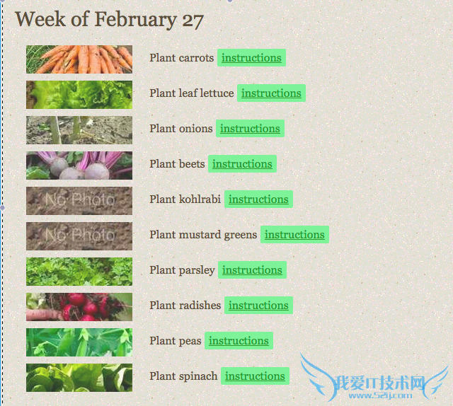 这个网站颇有点现实版“开心农场”的味道,但是又有他的不同之处。他注重的不是Just For Fun的体验,而是从专业性上提供指导,教你如何因地制宜,种植自己的蔬果。用户可以输入你的农场所在地的邮编,随后页面上会出现根据你所在地所推荐的各 类菜品的最佳种植季节和种植指南,如果你决定开始种植,网站会在最佳种植期前夕提供邮寄种子的服务。