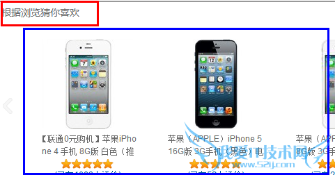 我在京东点击苹果手机产品页面,在产品内容页的最后面有“根据浏览猜你喜欢”然后出现的都是和苹果手机相关的产品。