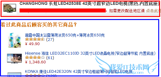在亚马逊点击一款电视产品,在产品内容页的最后面有这样的一个“看过此产品后顾客购买的其他产品”。