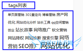 图为个人博客上的TAGS标签,每隔标签都对应着相关性的链接,比如我写的文章和营销有关,那么我把关于营销的所有文章都标上网络营销关键词,这样搜索引擎可以通过关键词爬行到标签里的所有内容,还可以给关键词增加排名。