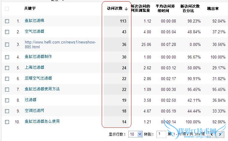 最后是分析关键词,看看你更新的内容中哪个关键词带来的流量比较多,依次往下排列,同时还可以使用之前我们说的那个方法导出相关的表格仔细研究。