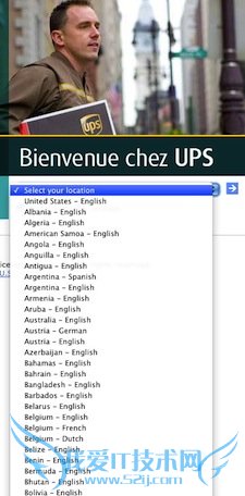 大多数公司都将资金大笔地投入能够产生最丰厚利润的市场。这些市场可能对于公司网页所提供的内容与功能并没有那么关注。然而,设计到通用导航导航,如果为某些特定国家或地区设置优先选择,那么可能会引起麻烦。上图显示的是UPS的页面下拉菜单,它很明显的流露出地区国家的偏好选择——将美国置于列表的顶端。那么,如果一个来自英国的用户使用这个菜单,必须要不停的下拉列表才能找到自己的地区。