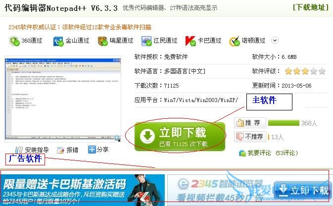 &&解决方案:笔者认为,软件的主次一定要分明,可以把主要软件的下载链接应该放在页面的最上方,广告软件的下载链接应该放到下方,如下图一样: