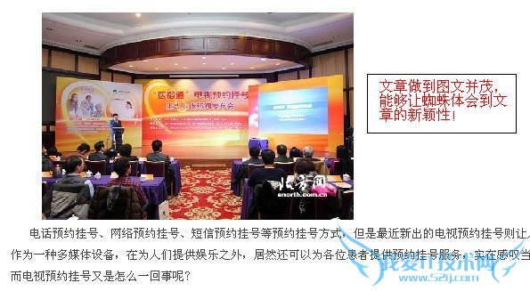 现在信息越来越开放,以往那种原创风气已经逐渐被淡忘了,很多站长都一味奉行“天下文章一大抄“的思想,整天去采集或者伪原创别人网站的文章,导致蜘蛛越来越厌烦这类观点陈旧无创意的文章。因此,让文章观点变得更新颖也是一个让蜘蛛喜爱你的网站的重要要素之一。笔者认为,观点新颖其实并不一定需要原创文章才能实现的,我们可以在平时编辑文章的时候可以加上一些图片或者视频,即使内容有点老生常谈也能让用户和蜘蛛体会到文章的新颖性,从而更加喜爱你的网站,忠实于你的网站。
