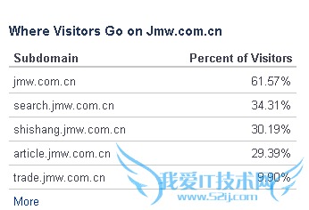 上面的数据是一些用户的站内搜索情况,可以了解用户在站内拜访了什么页面,什么页面是用户比较关注的,上面显示的结果干洗加盟、项目搜索、内容咨询是用户比较关注的。通过alexa工具,可以了解行业中用户关注的问题,什么信息是用户比较关注的,可以根据用户的需求来增加网站的信息。