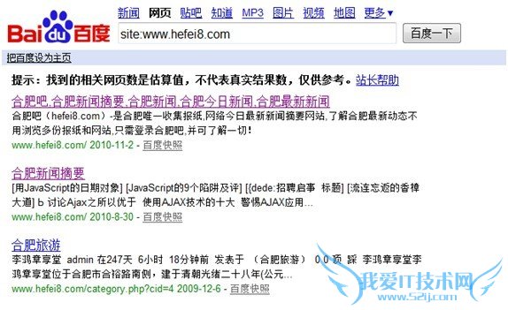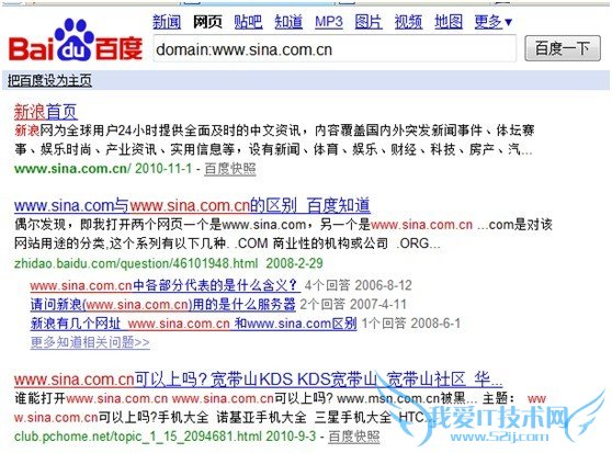site指令很容易理解,是检查网站被搜索友情抓取的页面,很多做优化的人非常重视这个site结果,在前段时间百度公布的搜索引擎优化指南中说到baidu中的site结果仅供参考,非准确的结果。经常用site的人也会发现,你往收录也的后面点击的时候,会发现收录总数在不断增加会减少。所以此条指令虽然常用,但是不能作为唯一标准。