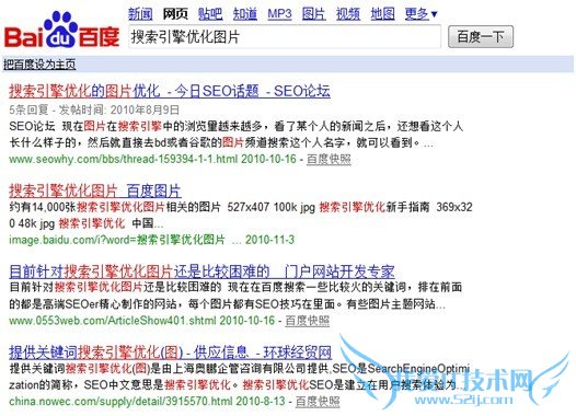 在输入了含有双引号的关键词后,返回的结果是完全匹配了关键词“搜索引擎优化图片”文字的结果,而下面的图片则是包含关键词“搜索引擎优化图片”且可能是分词或组合词的结果