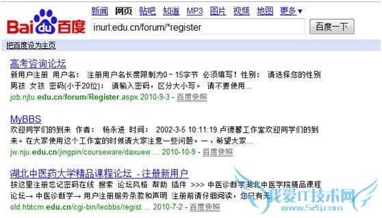 此条指令可能很多人不明白是什么意思,“inurl”——网址中包含edu.cn的网站同时含有forunm和register这2个单词,*为通用符。因为大家常用forunm和register表示注册页面。最终表达的意思所有教育类网站的注册页面,这样很容易找到高价值的论坛来供大家发布外部链接