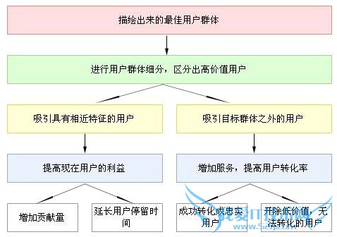 一个成熟的网站的在发展过程中会不断地优化用户体验以留住高价值的用户,同时吸引具有潜在价值的新用户。同时在发展过程中进行用户群体细分,取 出对网站发展有利的用户,采取各种方式来提高这部分用户从网站的获利性,增加他们在网站的利益。从而最终增加用户给网站的贡献量,通过网站对这部分用户粘 度的增加,延长用户停留时间,从中获取更高的附加价值。